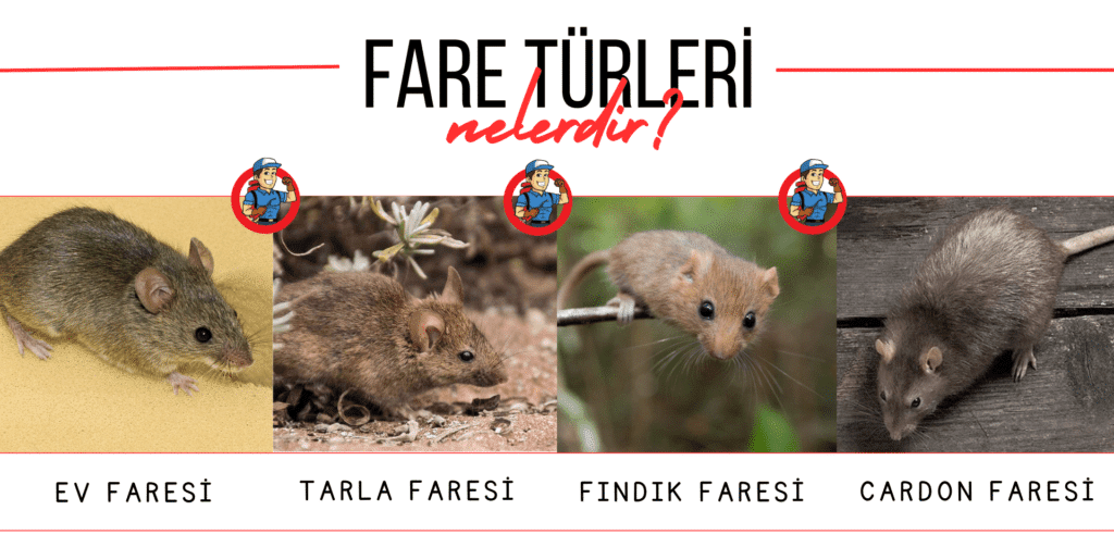 Türkiye’de bulunan birçok farklı fare türü vardır. Büyük bir haşere olarak kabul edilen ilk 3 fare türü Ev Faresi, Tarla Faresi ve lağım Faresidir.